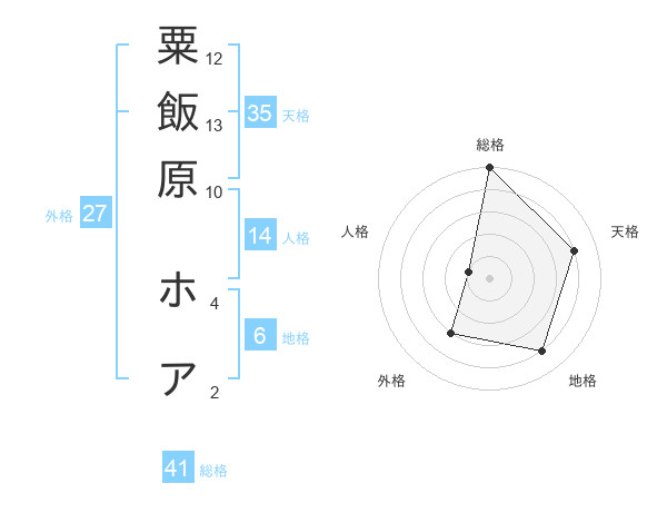 粟飯原 ホアさんの総格は41画の5点!