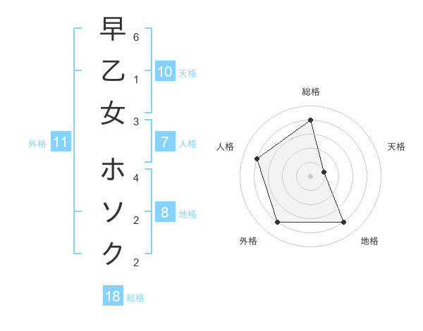 早乙女 ホソクさんを姓名の画数から五運を鑑定