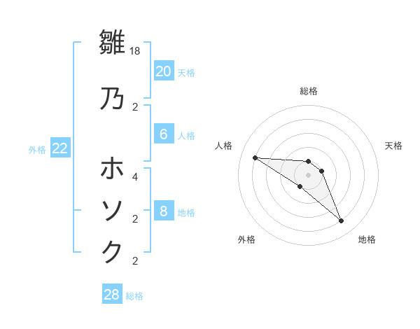 雛乃 ホソクさんを姓名の画数から五運を鑑定
