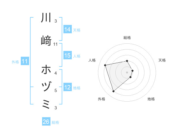川﨑 ホヅミさんを姓名の画数から五運を鑑定