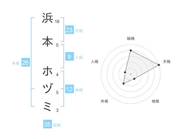 浜本 ホヅミさんの天格は23画の5点!