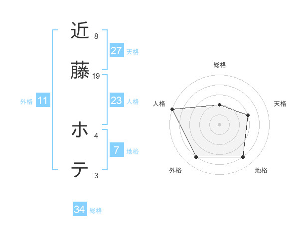 近藤 ホテさんの総格は34画の2点