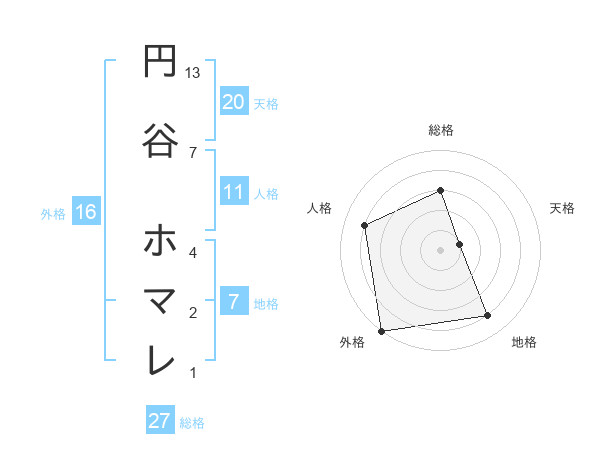 円谷 ホマレさんの外格は16画の5点!