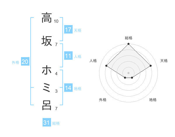 高坂 ホミ呂さんを姓名の画数から五運を鑑定