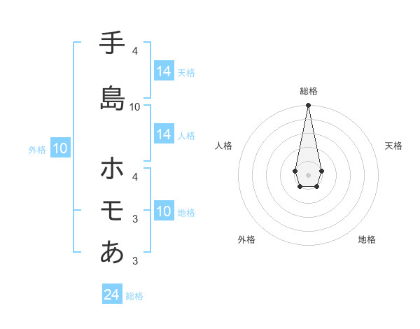 手島 ホモあさんの地格は10画の1点!