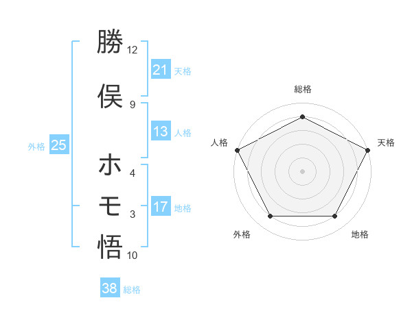 勝俣 ホモ悟さんの天格は21画の5点!