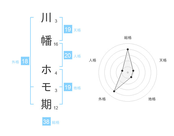 川幡 ホモ期さんの総格は38画の4点!