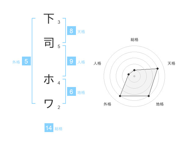 下司 ホワさんの総格は14画の1点!
