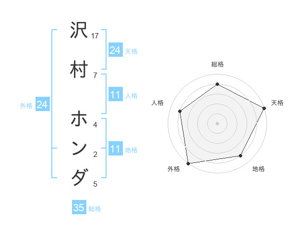 沢村 ホンダさんの天格は24画の5点!