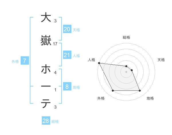 大嶽 ホーテさんを姓名の画数から五運を鑑定