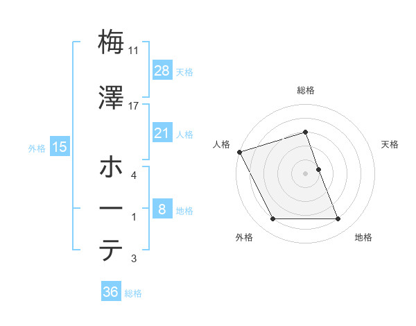 梅澤 ホーテさんを姓名の画数から五運を鑑定