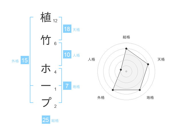 植竹 ホープさんの総格は25画の4点!