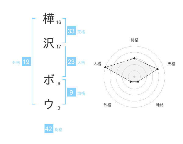 樺沢 ボウさんの総格は42画の3点!