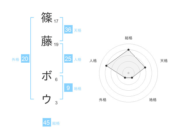 篠藤 ボウさんの総格は45画の4点!