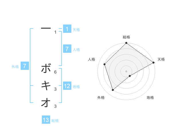 一 ボキオさんの総格は13画の5点!