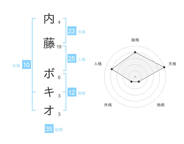 内藤 ボキオさんを姓名の画数から五運を鑑定