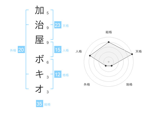 加治屋 ボキオさんを姓名の画数から五運を鑑定