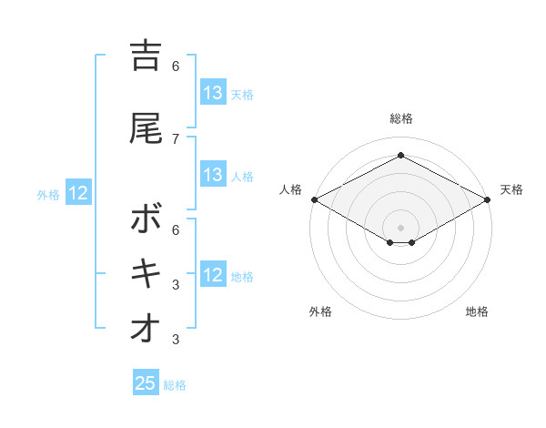 吉尾 ボキオさんの天格は13画の5点!