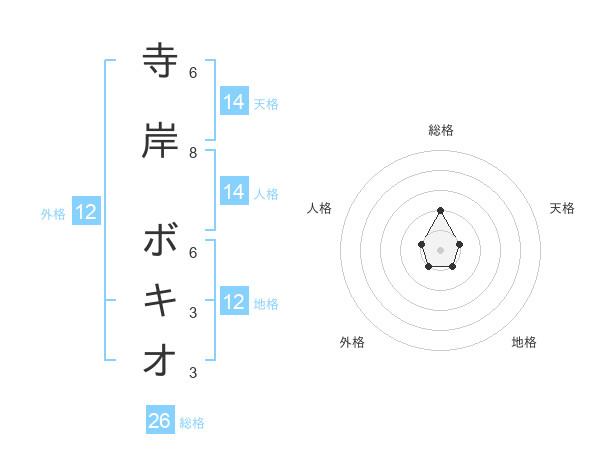 寺岸 ボキオさんの地格は12画の1点!