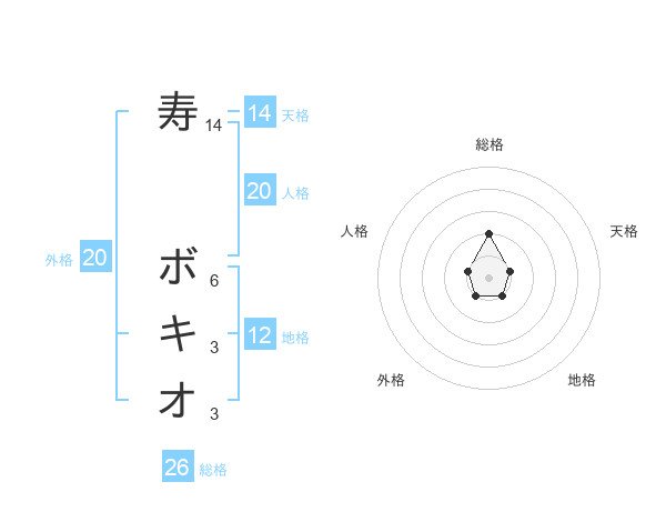 寿 ボキオさんの総格は26画の2点!