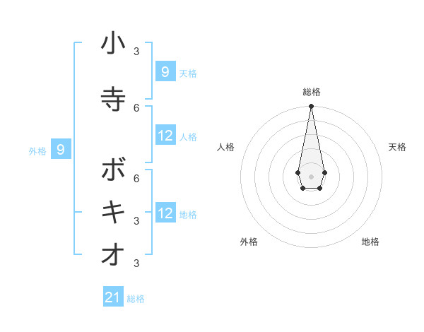 小寺 ボキオさんを姓名の画数から五運を鑑定