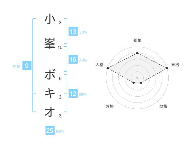 小峯 ボキオさんを姓名の画数から五運を鑑定