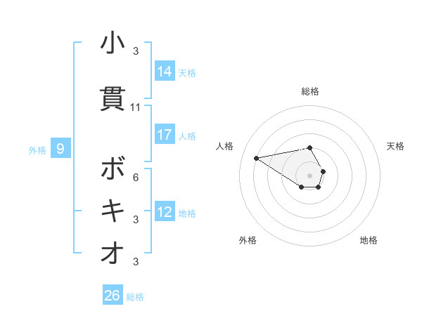 小貫 ボキオさんを姓名の画数から五運を鑑定