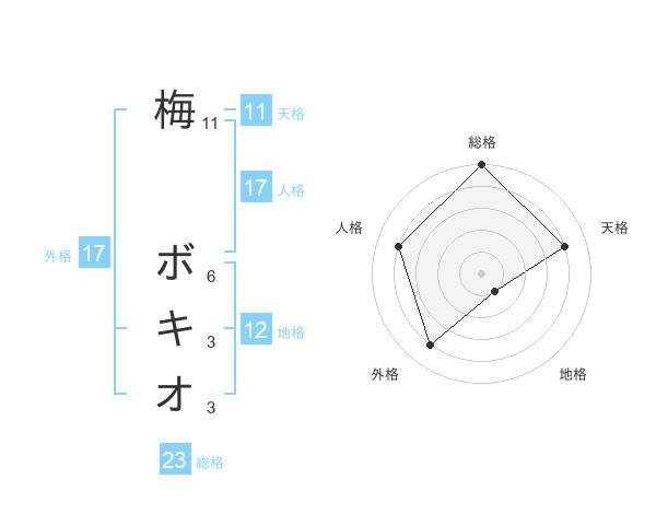 梅 ボキオさんの総格は23画の5点!