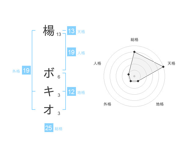 楊 ボキオさんの天格は13画の5点!