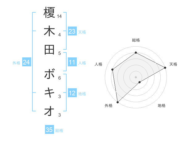 榎木田 ボキオさんを姓名の画数から五運を鑑定