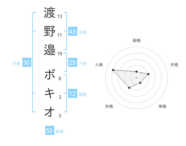 渡野邉 ボキオさんを姓名の画数から五運を鑑定