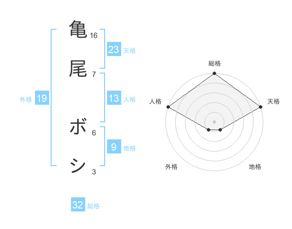 亀尾 ボシさんの総格は32画の5点!