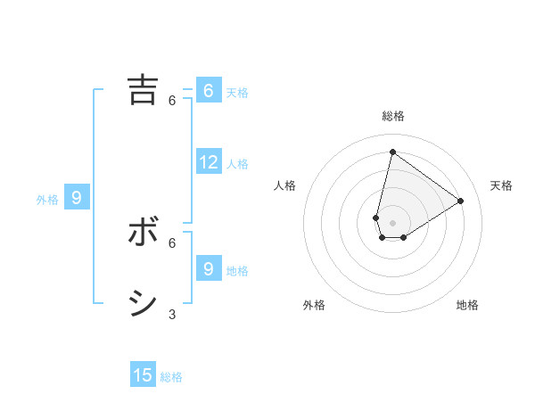 吉 ボシさんの総格は15画の4点!