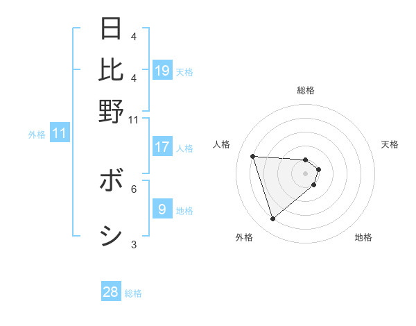 日比野 ボシさんを姓名の画数から五運を鑑定