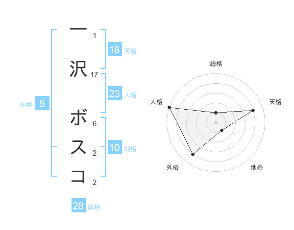 一沢 ボスコさんを姓名の画数から五運を鑑定