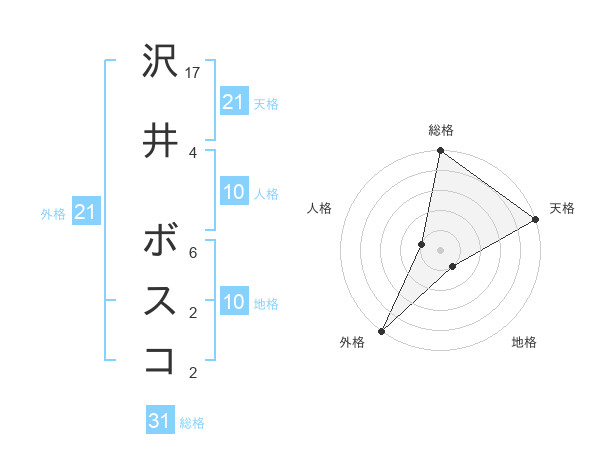 沢井 ボスコさんを姓名の画数から五運を鑑定