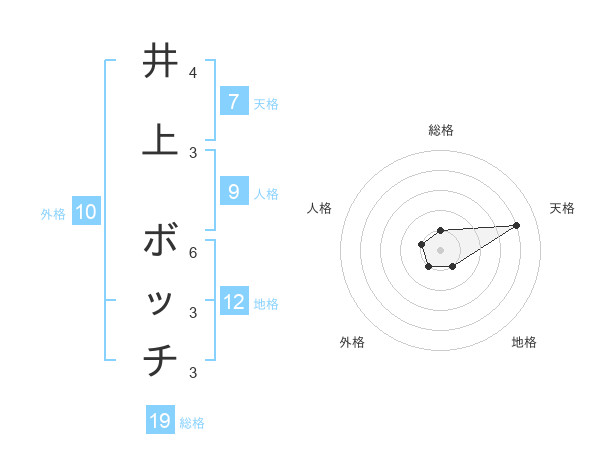 井上 ボッチさんを姓名の画数から五運を鑑定