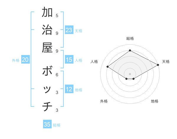 加治屋 ボッチさんを姓名の画数から五運を鑑定