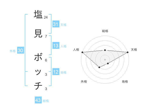 塩見 ボッチさんを姓名の画数から五運を鑑定