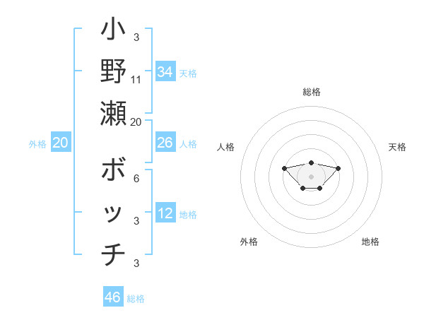 小野瀬 ボッチさんを姓名の画数から五運を鑑定