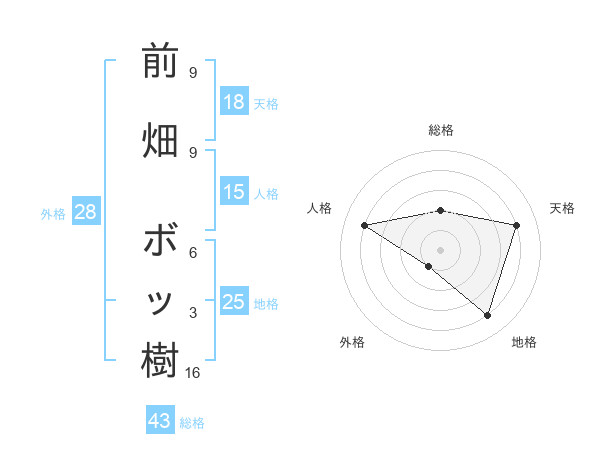 前畑 ボッ樹さんの天格は18画の4点!