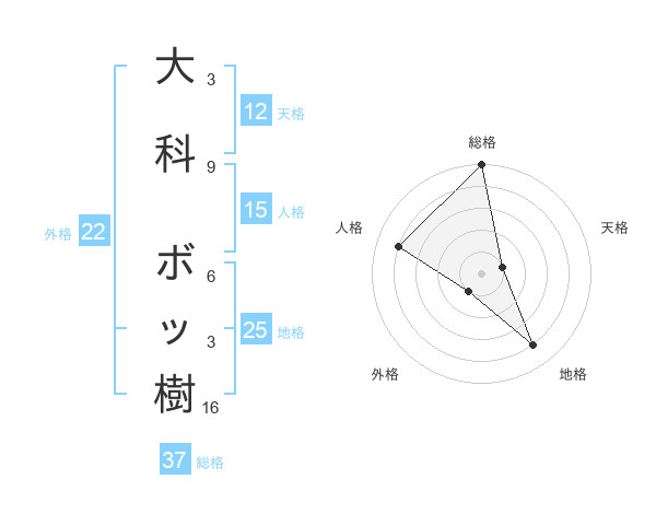 大科 ボッ樹さんを姓名の画数から五運を鑑定