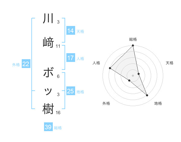 川﨑 ボッ樹さんの総格は39画の5点!