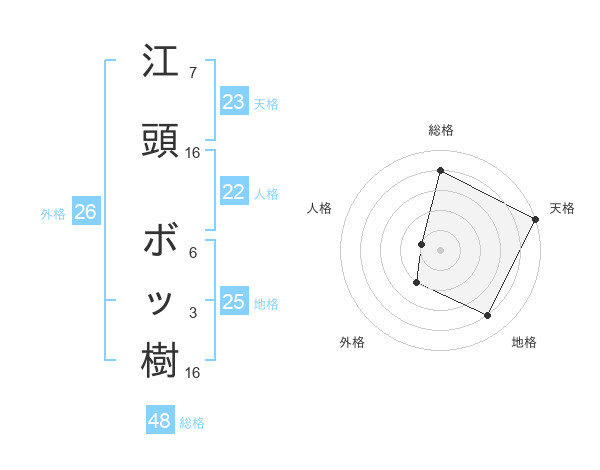 江頭 ボッ樹さんの外格は26画の2点!
