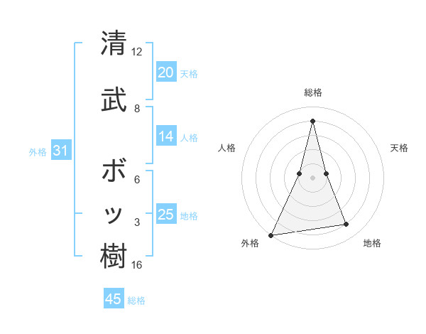 清武 ボッ樹さんを姓名の画数から五運を鑑定