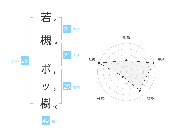 若槻 ボッ樹さんの天格は24画の5点!
