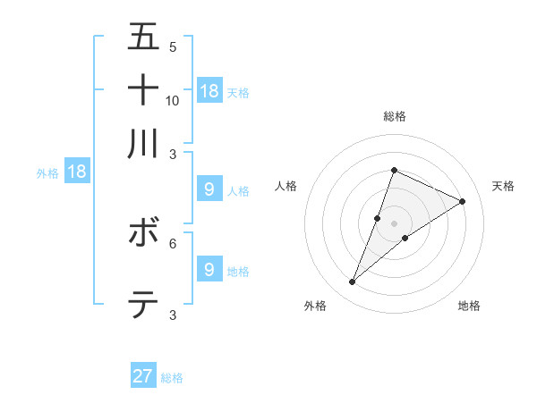 五十川 ボテさんを姓名の画数から五運を鑑定