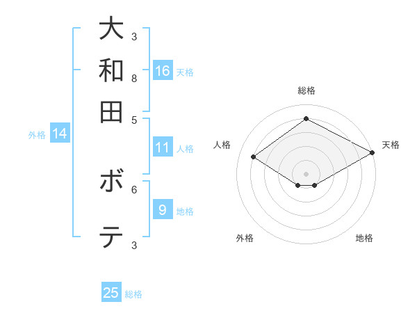 大和田 ボテさんを姓名の画数から五運を鑑定