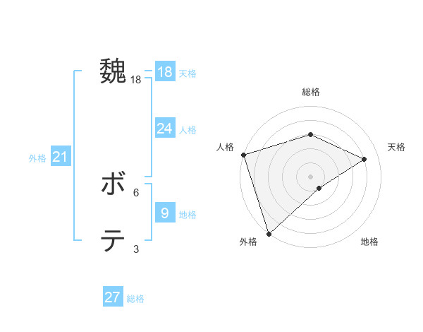 魏 ボテさんの総格は27画の3点!