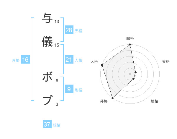 与儀 ボブさんを姓名の画数から五運を鑑定